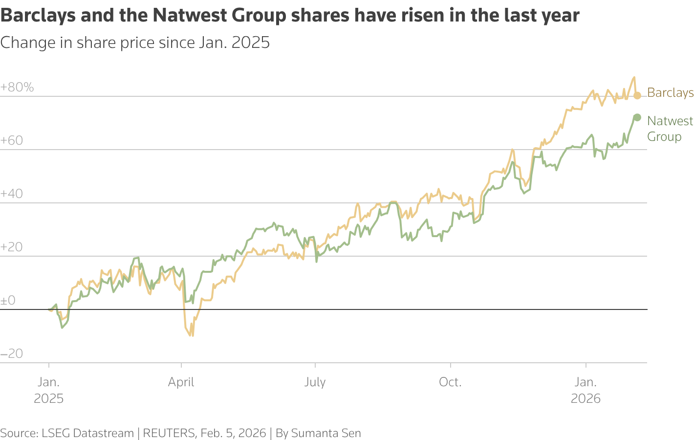 Britain's Barclays BARC.L and NatWest NWG.L and Italy's UniCredit CRDI.MI report 2025 earnings in coming days, following generally strong numbers already from Deutsche Bank DBKGn.DE and BNP Paribas BNPP.PA. The French lender and Lloyds LLOY.L also lifted their key profitability targets.