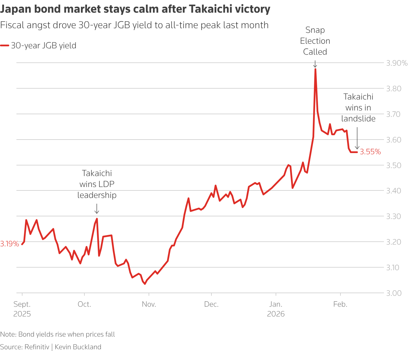 While voters have given Takaichi a huge mandate to reflate the economy, investors say she has little room to run up deficits or pressure will be quickly back on bonds and the currency.